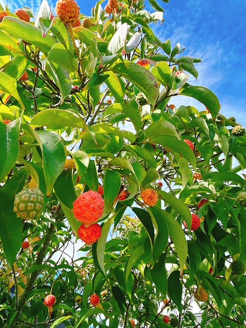 このヤマボウシの実は、実は、食べられるらしく。ただどうしてもまだ勇気が湧いておりません(笑)今年はたくさん花も咲いたせいか、実もたくさんなっています。