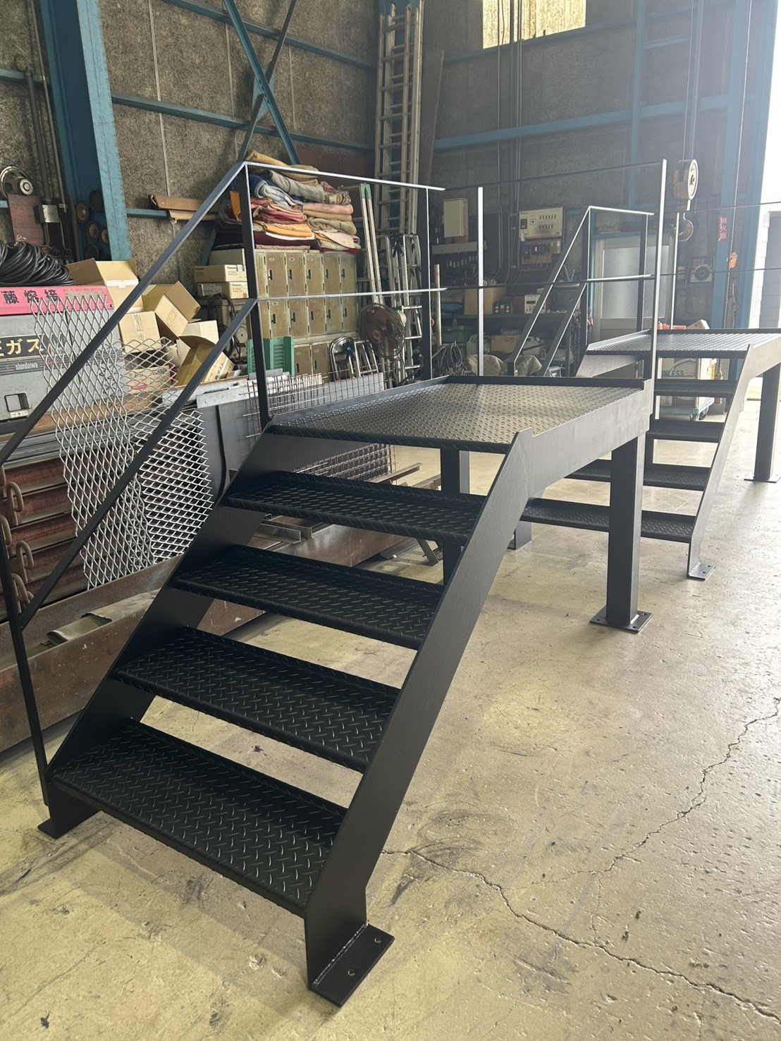こちらも後日、溶接屋さんが造って下さった階段を設置して完了となります。